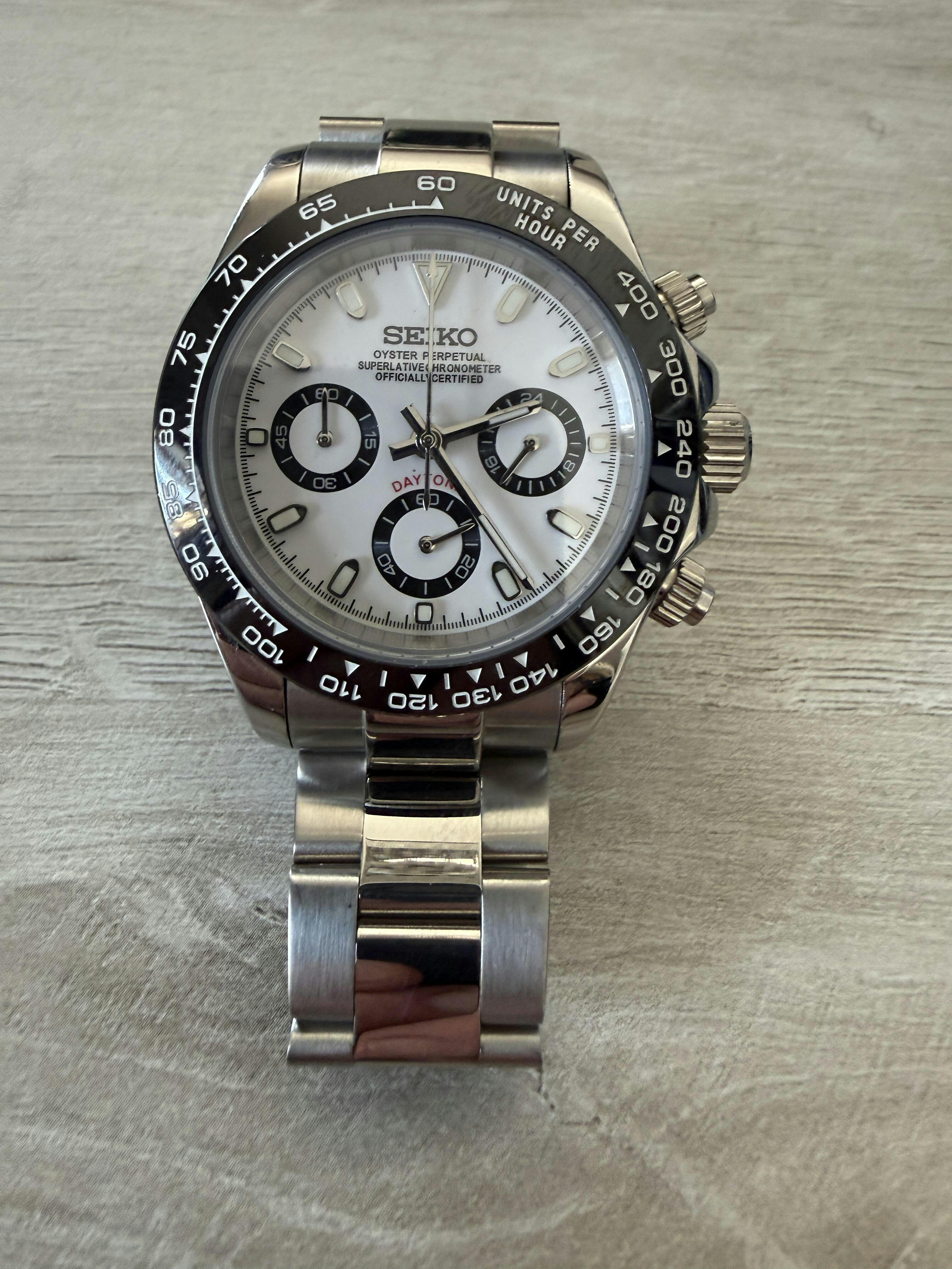 Very happy with my purchase of the Seiko Daytona Panda with the oyster bracelet, shipping was fast with tracking provided, the watch is beautiful and keeps perfect time, I plan to buy another watch from Somerville in the near future.