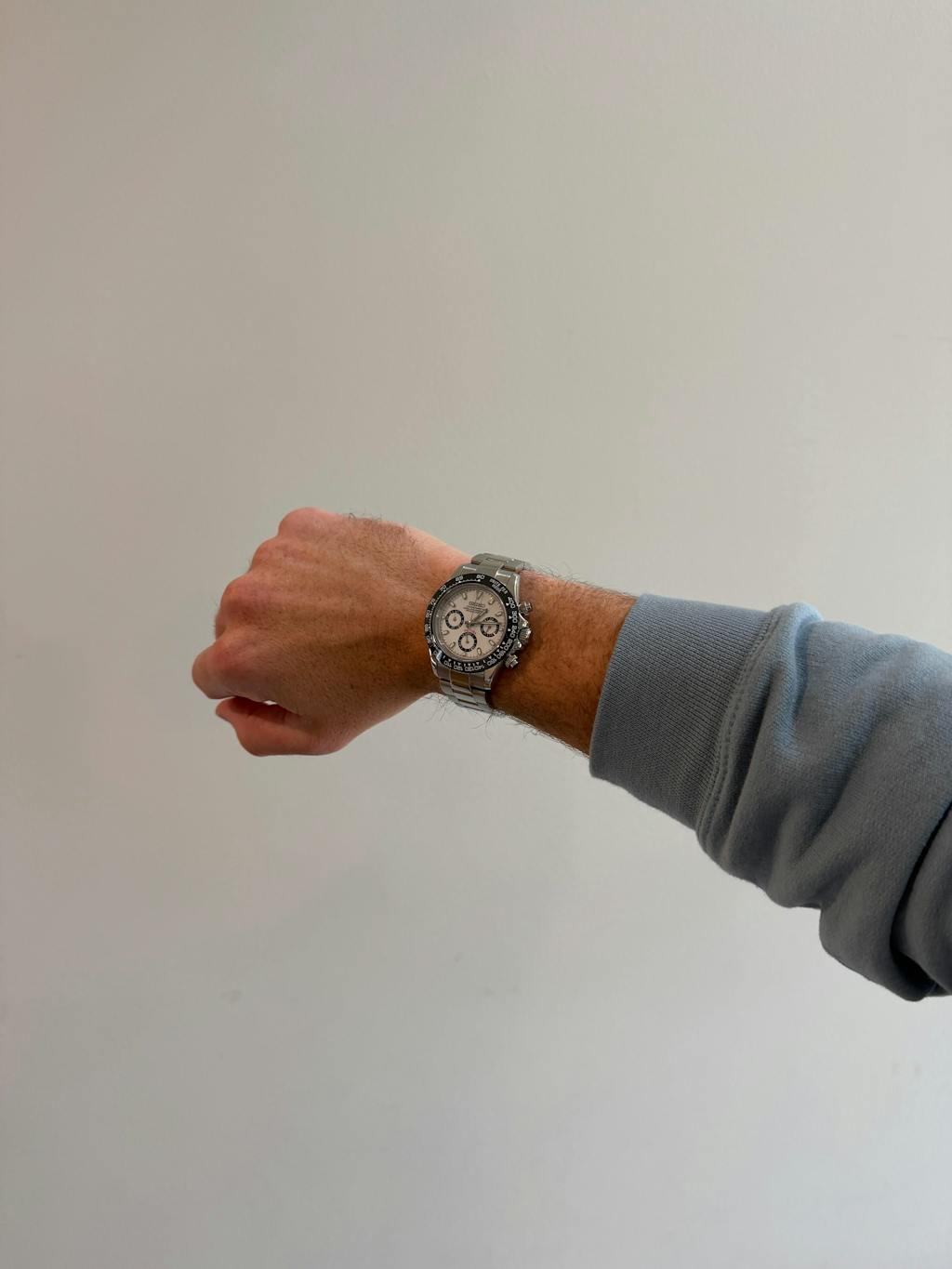 This watch was a special order. I had a Daytona built with date. Looks and feels great. Keeps perfect time.Delivery was fast and packaging was also impressive . Thank you