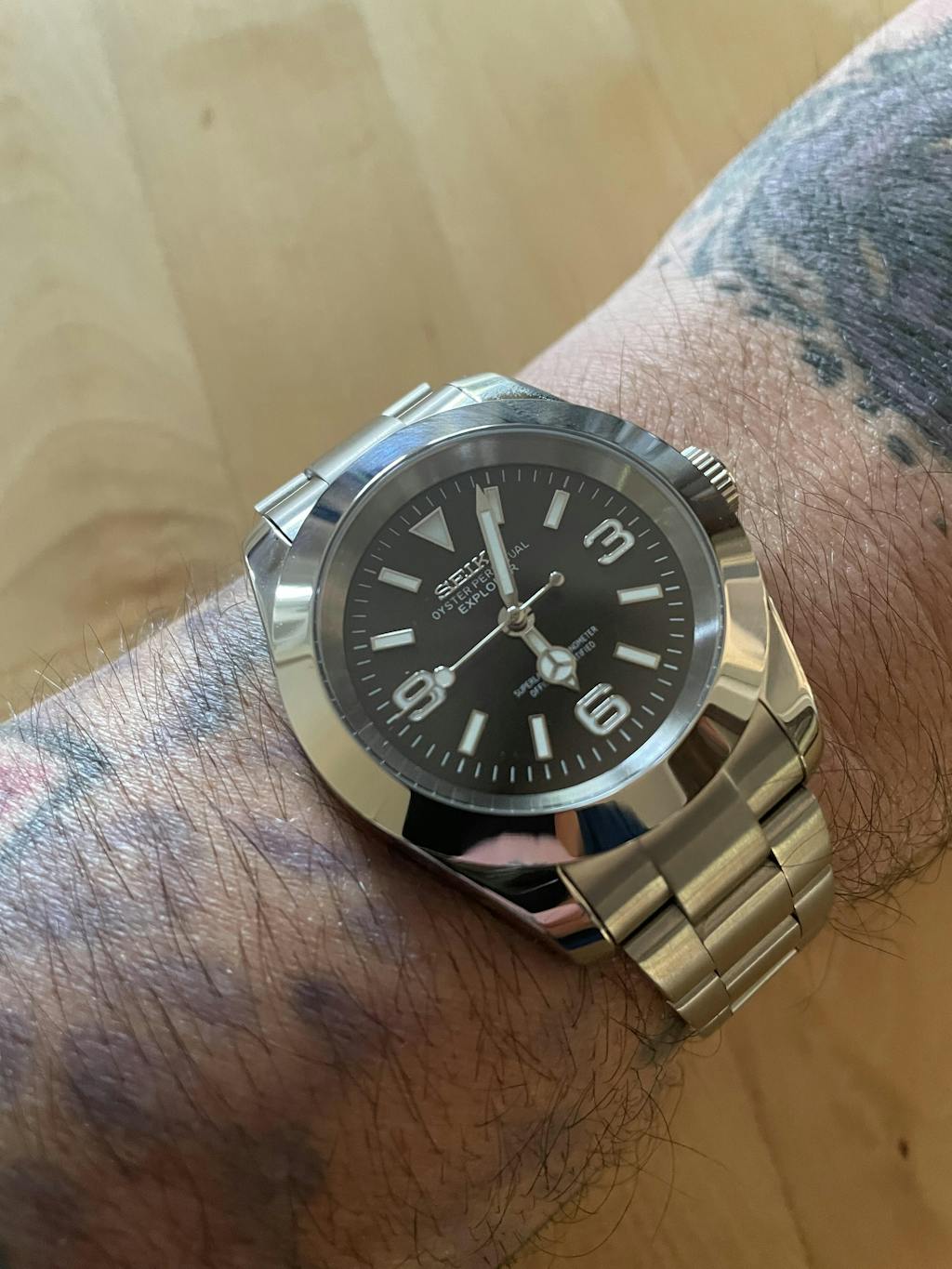 - Case Material: Polished 904L stainless steel, Explorer inspired case with screw-down crown.